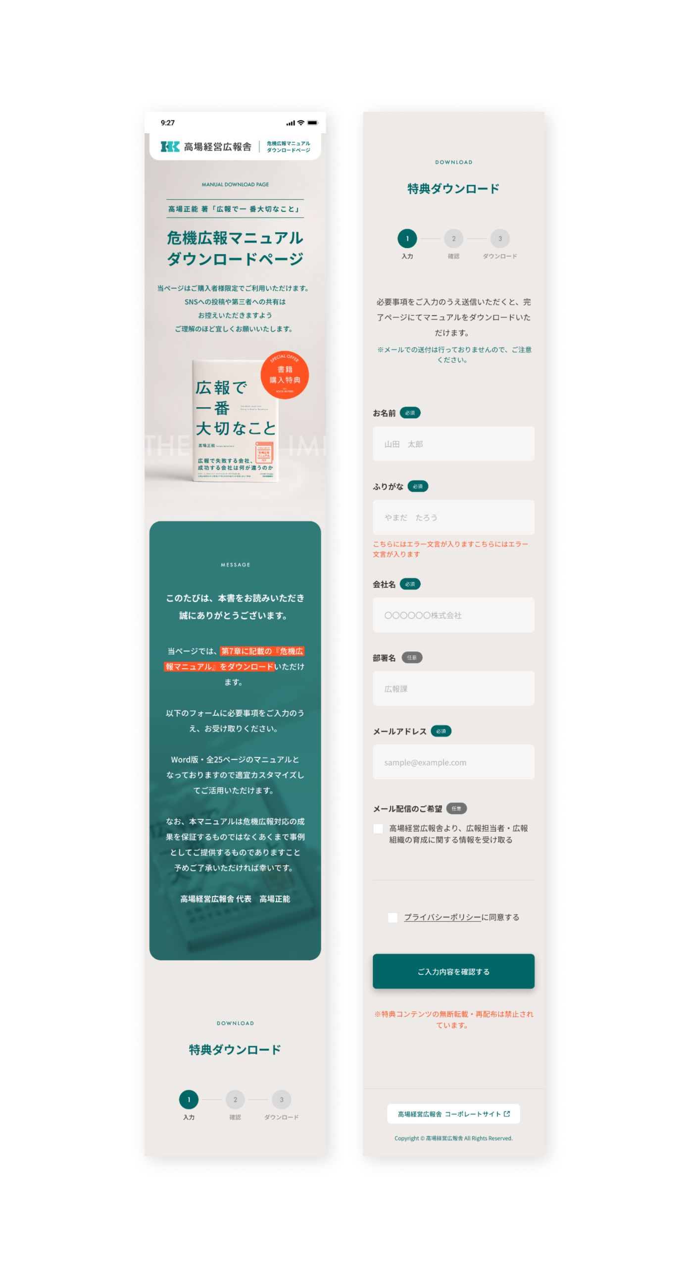 書籍の新刊発売に伴い、購入者特典として「本をご購入された方のみがアクセスできる専用ページ」を制作させていただきました。